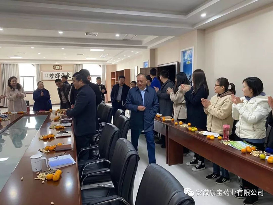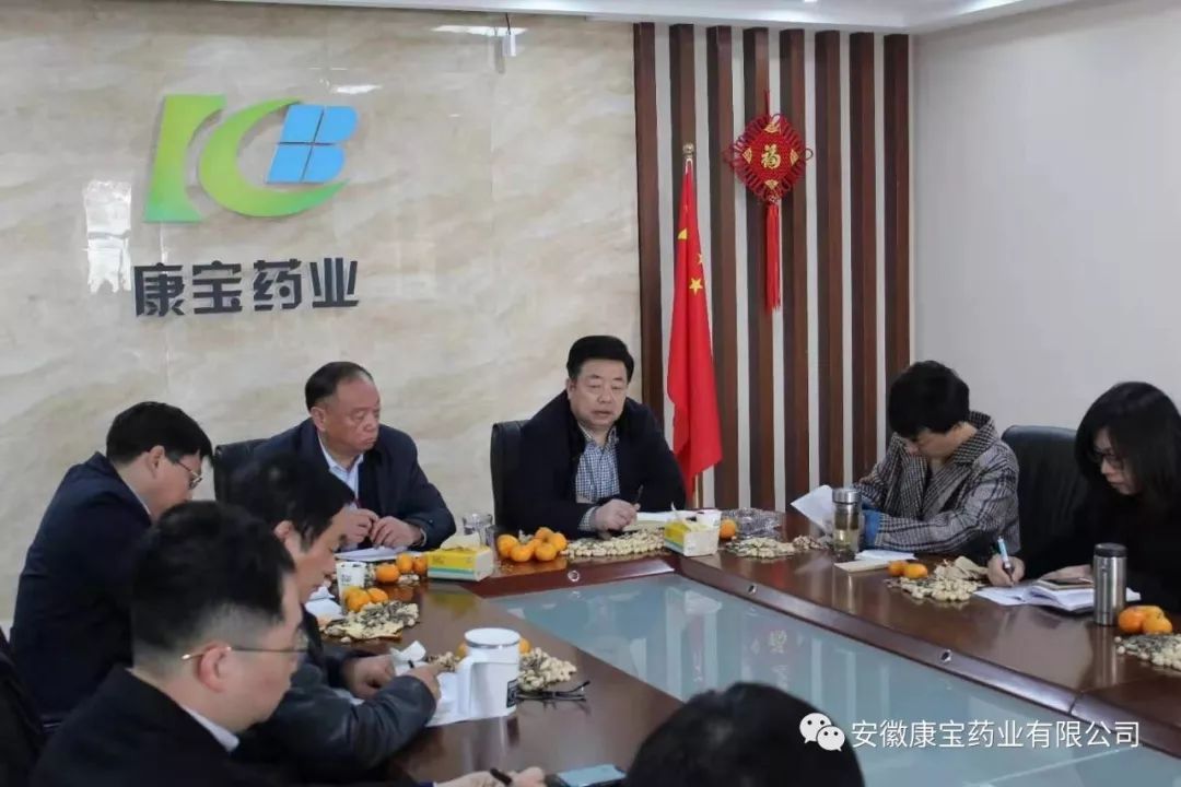 11月20日上午,醫院集團董事長、黨委書記江鴻方,醫院集團董事、康寶藥業董事長、總院黨委書記朱興林,總院辦公室檀主任一行到康寶藥業調研??祵毸帢I班子成員、部門負責人及員工代表共計40人參加調研會議。